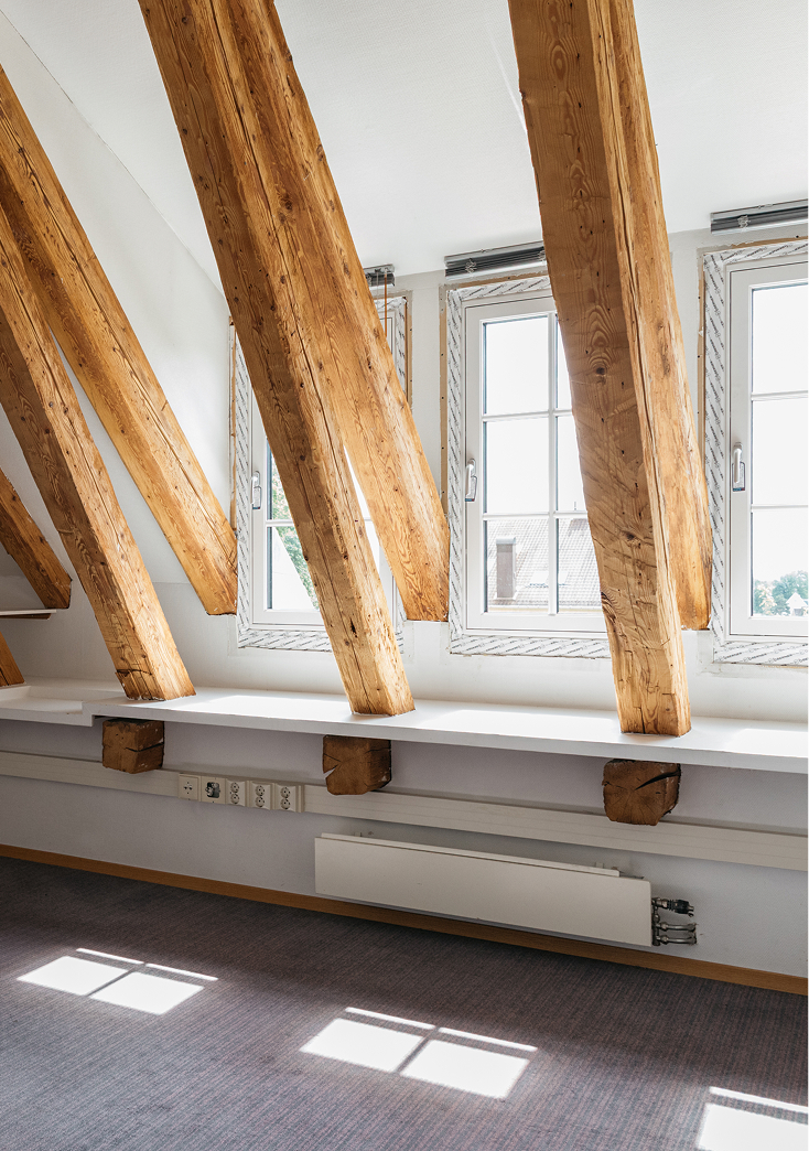 Her får du kontorer i unike lokaler med originale takbjelker, buede vinduer og utsikt mot hagen, og alt du trenger av fasiliteter.